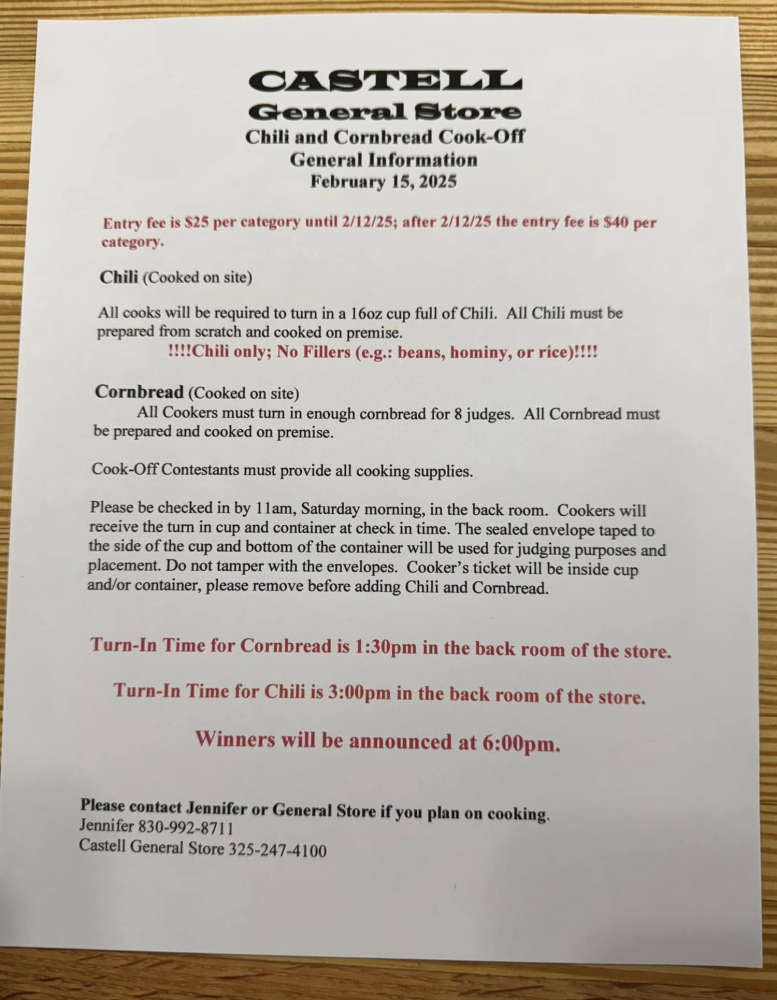 Castell General Store Chili Cookoff 2025 - Win cash and prizes!
